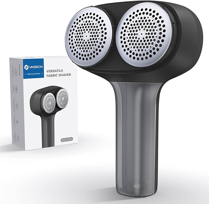 - ✅ Quick And Efficient Fabric Shaver - This fabric remover features a dual-head design that lets you cut through excess loose threads, fuzz balls, and lint to help you easily depill and defuzz your clothes. With two high-speed motors, VASSON defuzzer can help you to get rid of every bit of fur and gives your pilled, fuzzy garments a fresh look in just a few minutes.
