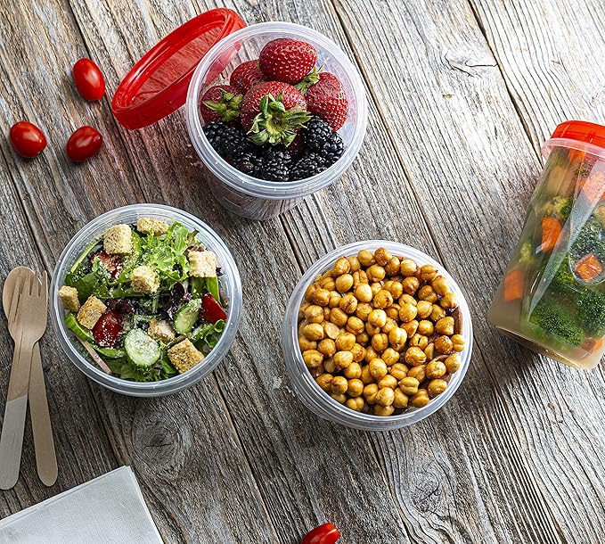 - 32 oz 10 Pack Twist Top Containers Clear bottom With Red Top Twist on Lids Reusable, Stackable, Food Storage Freezer Container