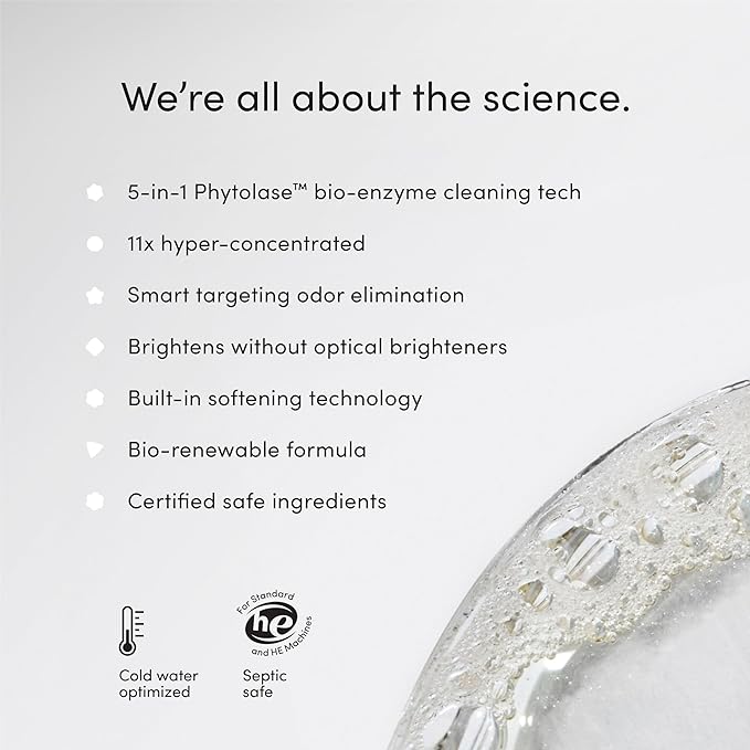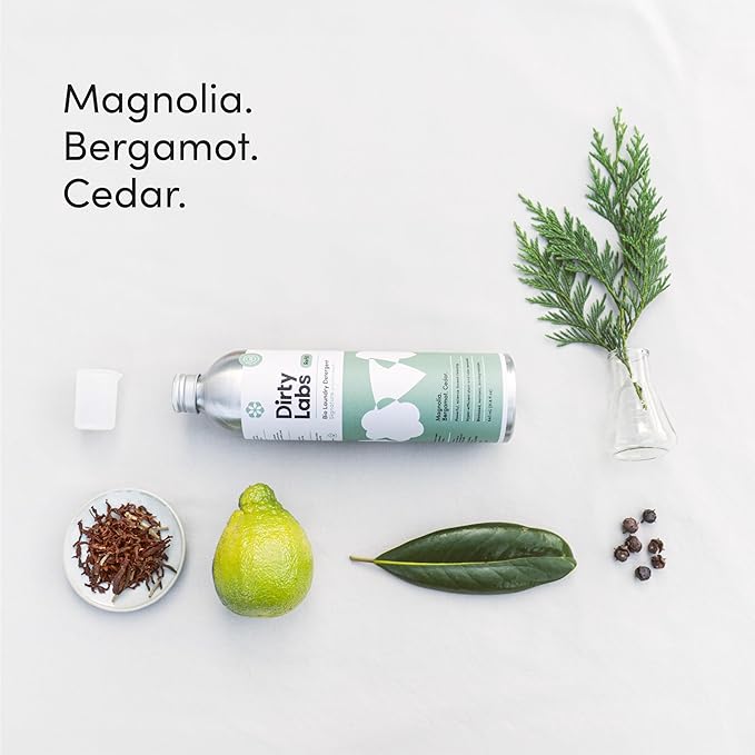 - SPECS: 21.6 fl oz = 80 loads. Signature Scent (Magnolia, Bergamot, & Cedar). Compatible with traditional and HE washers. Optimized for cold water. Certified EPA Safer Choice Partner. 97% USDA Biobased certified. No sulfates, dyes, parabens, preservatives, chlorine bleach, or CA Prop.65 Chemicals. Visit our store for more ingredients information.