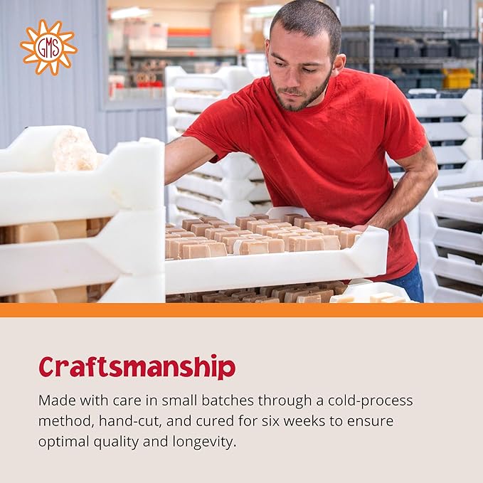 - HANDMADE IN THE USA. Each bar of soap goes through a cold process of soap-making with natural fats and oils. Then the bars are hand-cut, cured for six weeks and then shipped out to you.