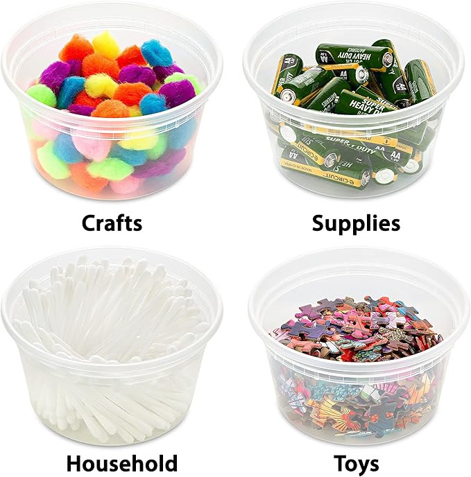 - Pack of 40 - Durable heavy duty, BPA-free plastic deli container (12oz.). Containers and lids are microwave-safe, freezer-safe, top rack dishwasher safe, stackable and reusable
