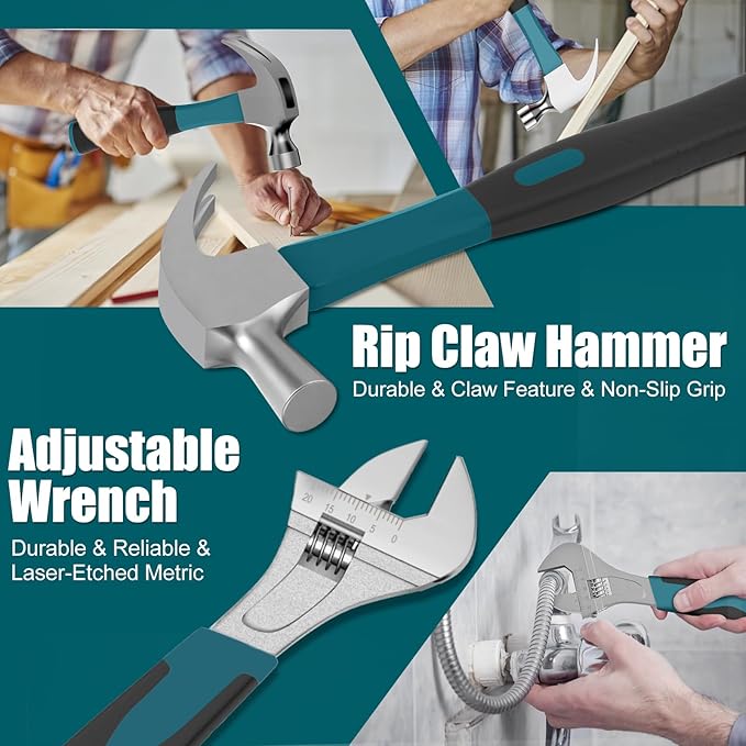 - 【Multi-functional tool kit set for everyone】 Tool kit for men and women includes home repair tools kit, motorbike repair tools, bike repair tools and woodworking tools, suitable for use in a variety of scenarios, such as home, garage, apartment, shop, construction site, marine, etc. It can be used for home repairs, car repairs, handyman work and DIY creations and other jobs. The tool set is excellent present set for beginners, family, lovers, partners
