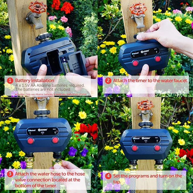Eden 93442 2-Zone Bluetooth Water Timer for Smart Irrigation - Remote Control via App, Customizable Scheduling, and Water Delay Setting