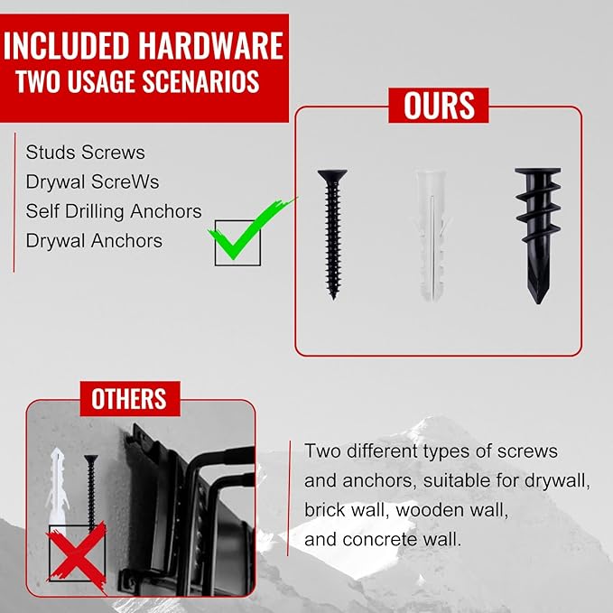 - EASY TO RELOCATER & ADJUSTABLE: The Garage Storage system with 3pcs Steel wall racks (16 inch), 6pcs Double Hooks (10 inch), Garage hooks can be easily repositioned anywhere on tracks of the panel when storage needs change. And fast wall-mount hooks can install in a snap.