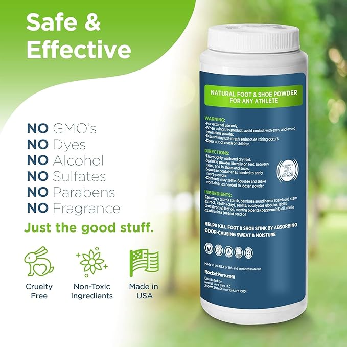 - POWERFUL ODOR CONTROL: Our Rocket Pure natural foot powder & shoe powder deodorizer eliminates foot and shoe odors effectively.
