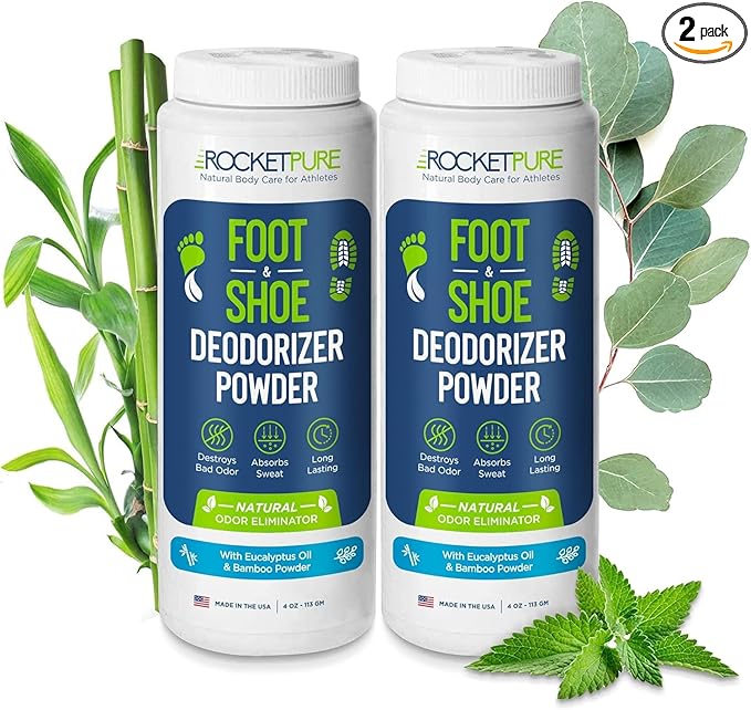 Rocket Pure Natural Foot & Shoe Deodorizer Powder - Eucalyptus Foot & Shoe Powder Odor Control - Removes, Controls & Prevents Odors - Made with Essential Oils - Made in USA (4oz, 2-Pack)