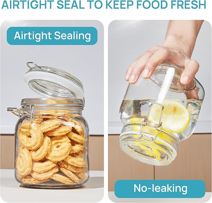 - Airtight and Keep Food Fresher ---- The Lids of these glass containers are airtight design, with rubber gasket clamp lids to ensure a leak-proof and airtight seal, keep your food dry and fresh for a long time. Convenient and attractive on the kitchen counter tops, they are also a great addition to your pantry organization.