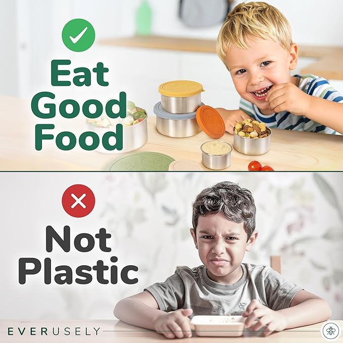 Everusely - Stainless Steel Containers with Lids - Set of 5, Muted Collection - Leakproof Stainless Steel Food Containers - Nesting Snack Holders - Metal Lunch Box - Portable & Reusable Meal Kit