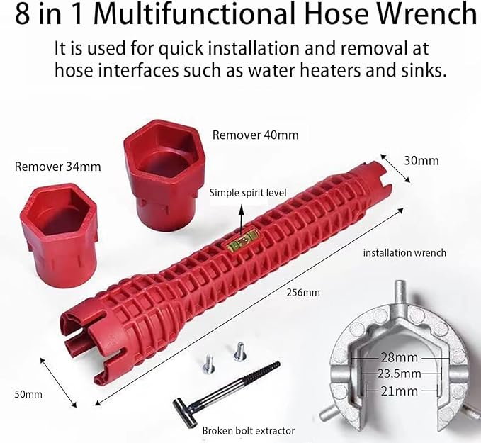 8 in 1 Multifunctional Sink Bathroom Wrench, Plumbing Installation Tool Household Water Pipe Faucet Washing Basin Corner Valve Sink Repair Removal Tool