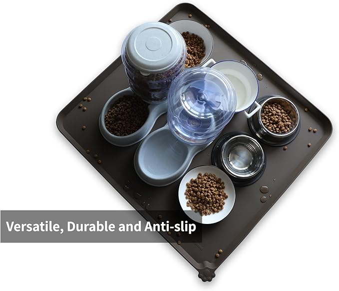 Hoki Found XX-Large Silicone Pet Food Mats Tray - Non Slip Pet Dog Cat Bowl Mats Placemat - Dog Pet Cat Feeding Mat - Waterproof Dog Cat Food Mats -Pet Water Mats for Carpet - Coffee