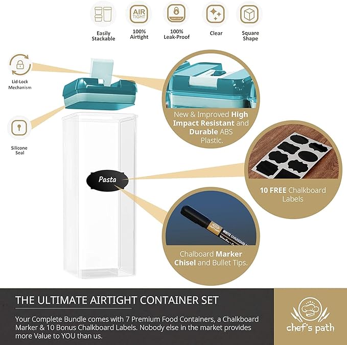 - [Top Notch Kitchen Organization] - Our premium storage containers with lids will transform your kitchen glamorously. These air tight sealable containers for food come with bonus whiteboard marker and reusable labels to equip you with the best pantry storage experience.