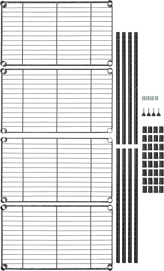 Amazon Basics 4-Shelf Steel Wire Storage Rack, Adjustable, Sturdy, Easy Assembly, 13.4 D x 23.2 W x 48 H in, Black