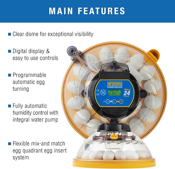 Brinsea Maxi 24 EX Egg Incubator with Automatic Humidity Control and Egg Turning for Hatching 24 Chicken, Duck, or Other Eggs, Optimal Flexibility with Mix & Match Sizes