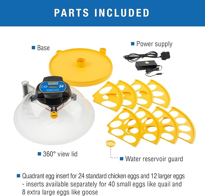 - Durable & Easy to Clean: Incorporates fan assisted airflow for uniform incubator temperature distribution and optimal hatching conditions; Easy to maintain design ensures long-term reliability and is backed by a 3-year warranty