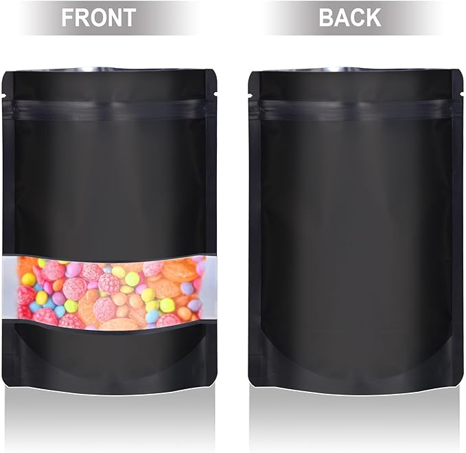4"x6" 120pcs Mylar Bags for Food Storage,Smell Proof Bag with Matte Window Resealable Food Storage Bags for Small Business, Stand-up Foil Pouch Packaging Freeze Dried Candy Bag(Black)