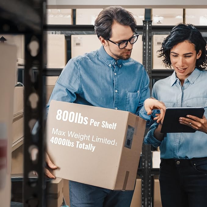 - 【4000 lbs Load Capacity】 Made of the high-quality metal frame, this shelving unit is more steadily and tough than normal garage shelves. The maximum capacity is up to 4000 lbs totally, 800 lbs per shelf, which can store much more stuff and tools in your garage or warehouse.