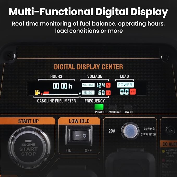 - [Clear Digital Display]The panel is equipped with a digital display screen to monitor the data and feedback information in real time. It helps you clearly understand the fuel condition, usage, power generation status and generator condition.