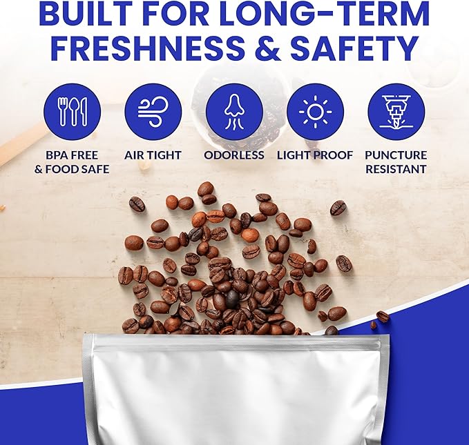 - TRUE HEAVY-DUTY 14 MIL THICKNESS WITH 3-LAYER PROTECTION – Our mylar storage bags are constructed with premium PE/PET/aluminum construction creates an impenetrable barrier against oxygen, moisture, and light. BPA-free, odorless, and puncture-resistant design outlasts thin competitor bags for reliable long-term food preservation.