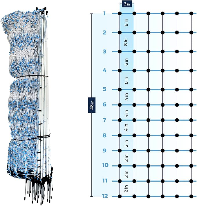 - 🐾 Unparalleled Visibility: Starkline Netting is made with White and Cyan polywire. This high-visibility feature ensures that pasture animals, predators, and humans can easily distinguish the boundaries, minimizing the risk of accidental collisions and ensuring a safer environment for all. From a distance, the blend of Cyan and White polywire blends seamlessly into the landscape, providing an unobtrusive yet effective barrier.