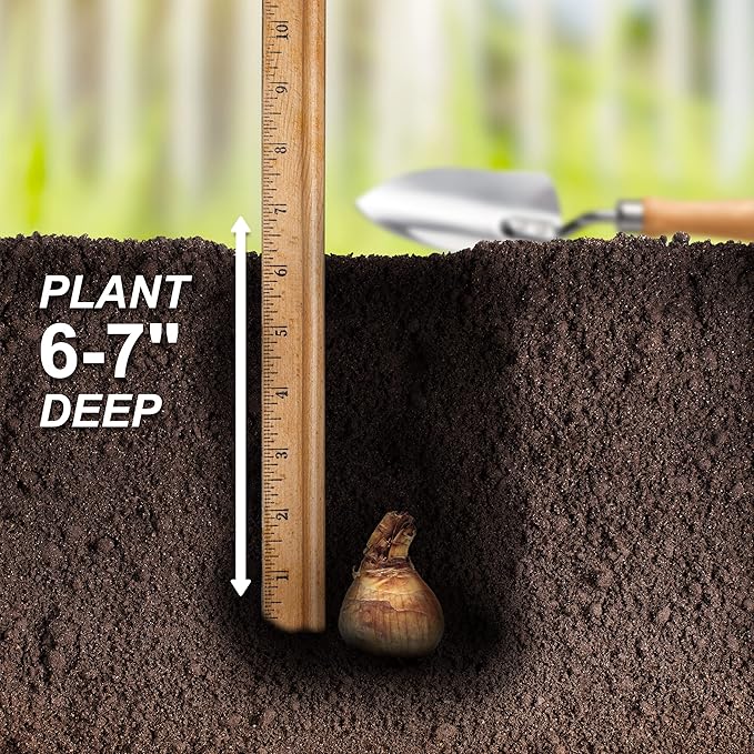 - Product Care Instructions : Plant daffodil bulbs in the fall when the ground cools and before the first hard frost. Outside temperature should be about 65 degrees Fahrenheit or cooler. Select a well-drained location that receives full sun to partial shade. Dig a hole 6-7" deep in loosened soil and place bulbs in the hole. Bulbs should be spaced about 4-6” apart. Plant them in the ground with their pointy ends up. Cover with soil and water well so the soil above the bulb settles. Plant daffodil bulbs in the fall when the ground cools and before the first hard frost. Outside temperature should be about 65 degrees Fahrenheit or cooler. Select a well-drain… See more