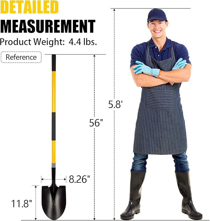- Dimension: The 56 inches shovel for digging is suitable for adults, the right size can reduce the pressure on the waist, and long-time users will not feel tired.