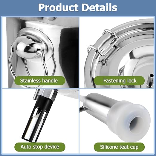 - 【High quality material & health safety】Adjustable pulsating milking machine parts are made of high standard material, the milk bucket is made of high quality 304 stainless steel, good chemical resistance and rust resistance, strong and durable, easy to clean. Silicone hose and milk cup liner are made of food-grade silicone, healthy and environmentally friendly, non-toxic and tasteless
