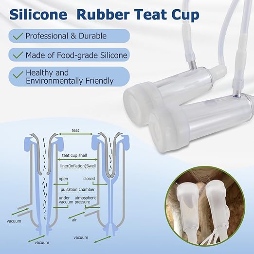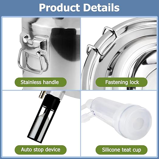 - 【High quality material & health safety】 Adjustable pulsating milking machine parts are made of high standard material, the milk bucket is made of high quality 304 stainless steel, good chemical resistance and rust resistance, strong and durable, easy to clean. Silicone hose and milk cup liner are made of food-grade silicone, healthy and environmentally friendly, non-toxic and tasteless