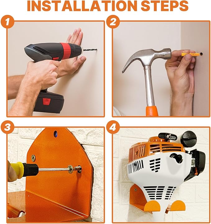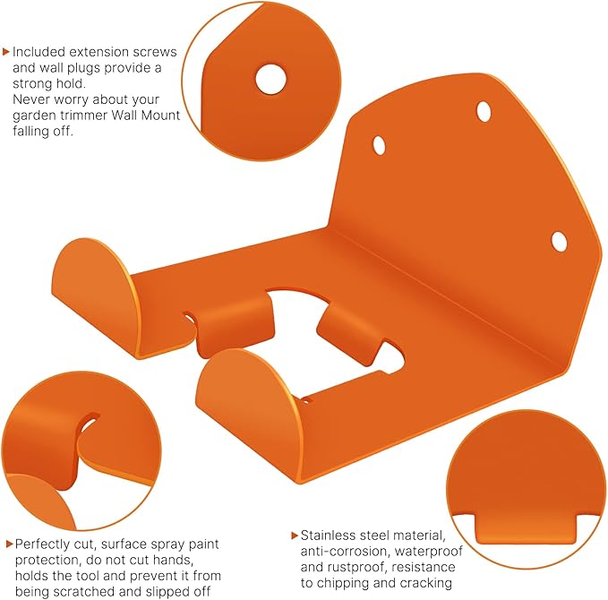 - SECURE AND STABLE: With our Garage Trimmer Rack, you can rest assured that your garden power tools will be safe and secure when not in use, preventing damage or injury. Package Included: The trimmer hanger hook kit comes with 3 racks, 9 screws, and 9 expansion tubes for easy installation