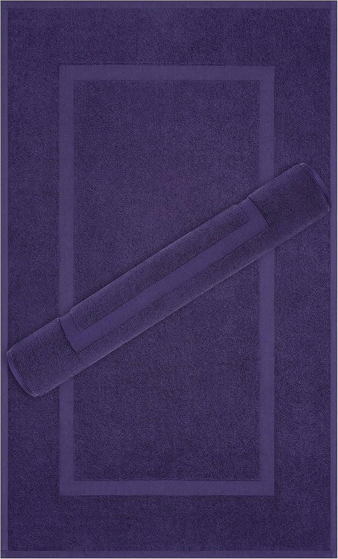 Cotton Paradise 100% Cotton Bath Mats for Bathroom Floor Set of 2 Pack, 20x34 Soft Absorbent Washable Quick Dry Tub Bathmat, Purple Towel Bath Mat
