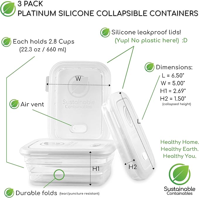 - BUILT TO LAST: Our premium quality containers & leakproof lids are made of heavy-duty, see-through, food-grade platinum silicone. Durable & tear resistant construction