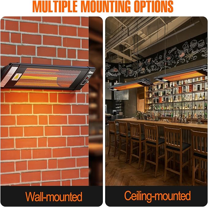 - MULTIPLE MOUNTING OPTIONS - The heater can be wall-mounted, ceiling mount, and even hang down using the provided hanging chain.