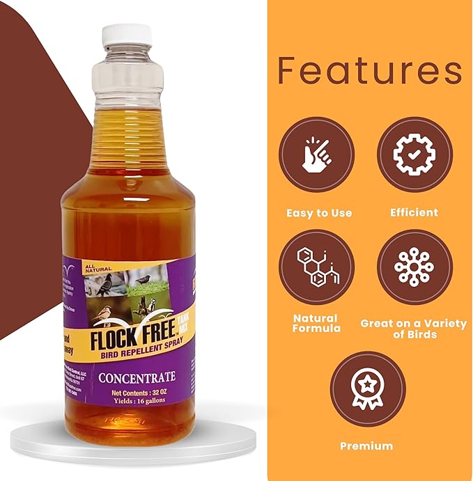 Bird Repellent Spray Concentrate, Residential Bird Problem Solution, 32 oz Concentrate, Makes up to 16 gallons