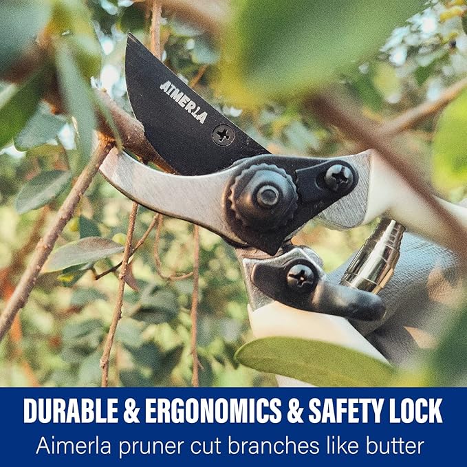 - ERGONOMIC HANDLE, NON-SLIP RUBBER: Featuring 7 different gardening tools with hand trowel, transplant trowel, garden rake, garden fork, weeder, weeding knive and pruner, this set from Aimerla is a Green team for anyone who wants to stock up on ergonomic hand tools with soft silicone handle covers for a firm non-slip grip. The materials is weatherproof and at the correct length for better leverage. Integrated hang hole makes for simple storage. This is THE perfect gift for DIE HARD GARDEN LOVERS!