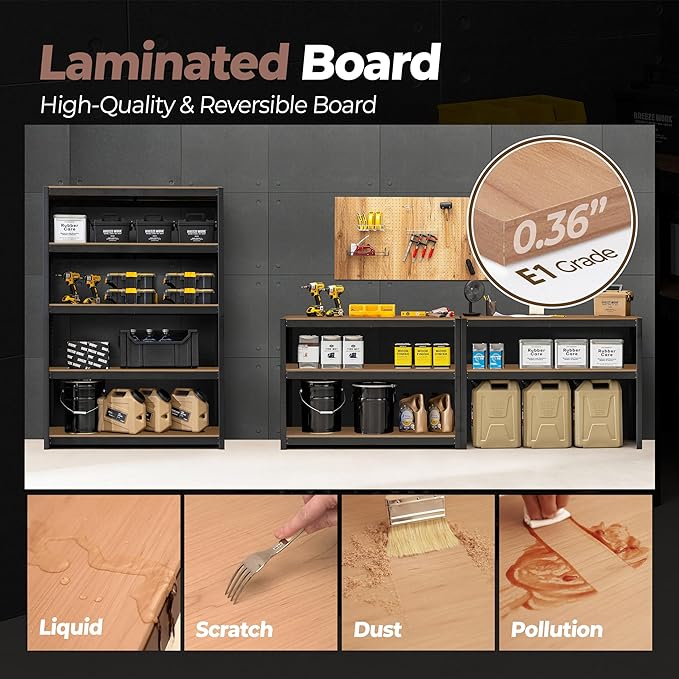 HOMEDANT House 5 Tier Laminated Metal Shelving Unit Adjustable Storage Utility Rack Heavy Duty Shelves Organization Multipurpose Shelf Kitchen Garage Pantry Closet (1, (L) 48.1" W, Black)