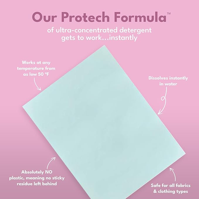 - SUDS-FREE CONVENIENCE: Tired of dealing with messy spills and suds? Our detergent sheets provide a mess-free and suds-free laundry experience. Say goodbye to measuring and the risk of spills - simply toss a sheet into the washer and let it do the work. Enjoy the convenience of a hassle-free laundry routine with our suds-free detergent sheets.