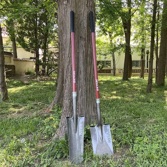 KYLIN Heavy Duty Long Fiberglass Handle Shovel 2-Piece Set, for Digging, Gardening, Cleaning Out Ditches, Digging Narrow Trenches, Laying Drains, Pipes and Cable Channels and Landscaping Industry.