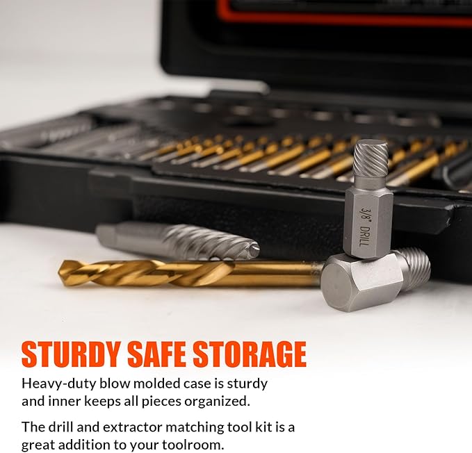 35 Pcs Screw Extractor and Left Hand Drill Bits Set, Easy Out Screw Extractor Kit with HSS Steel Reverse Drill Bit for Broken Nuts, Stripped Bolts Remove