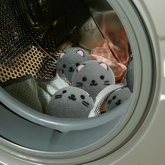 Dryer Balls Laundry Reusable - XL Wool Dryer Balls - Handmade Cute Cat Shape 6 Pack, Extra Large Dryer Balls, Shorten Drying Time, Organic Wool - Dry 1000+ Loads