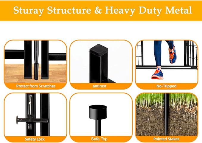- Wide Application: This Metal Fence is Great for Gardens, Lawns, Vegetable Garden Borders, and Path Edge Fences. It Can also be Used Indoors as Your Pet's Fence. The Bottom of the Pole is Equipped with an Anti-friction Sleeve That Won't Scratch Your Floors. It Can also Work as an Outdoor Pet Fence When You're Traveling or Camping