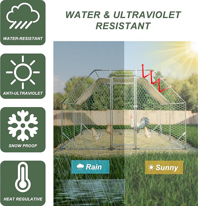 Chicken Coop Large Metal Chicken Coop Walk-In Poultry Cage Chicken Run for 15-20 Chickens,Durable Chicken House/cage with Waterproof and Anti-UV Cover,Suit for Your Backyard(13'Lx9.8'Wx6.8'H)