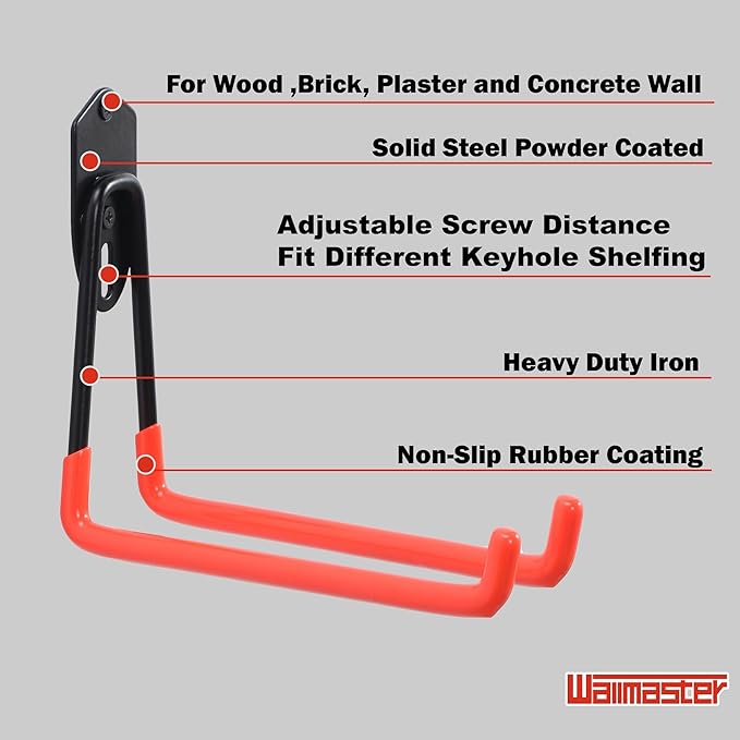 - UNIQUE PATENT DESIGN BY WALLMASTER- Patented and exclusively designed by Wallmaster. Their smart garage storage solutions deliver a clutter-free, organized life. Get the original and best wall mount storage hooks