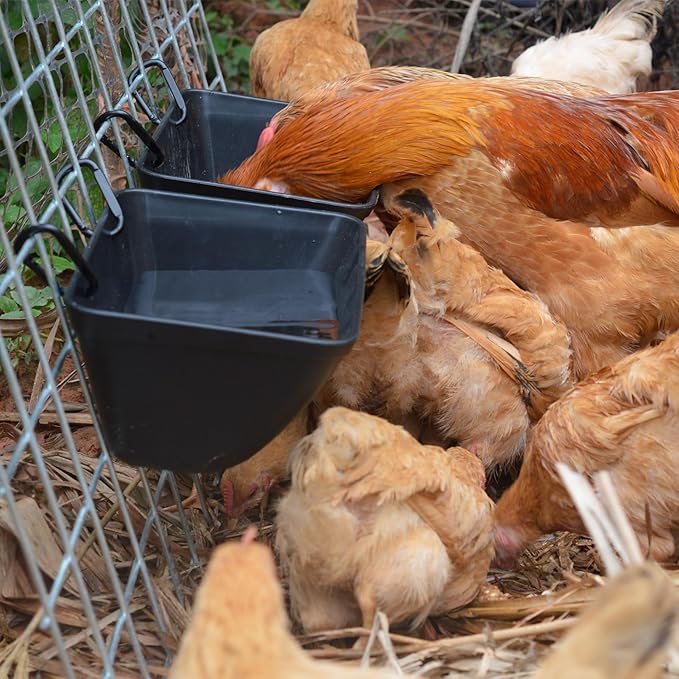 Chicken Feeder Hanging Feed Trough Waterer Bucket for Duck Goose Goat Sheep Dog Poultry & Small Livestock in Coop & Farm Goat Supplies Feeder (4, Black)