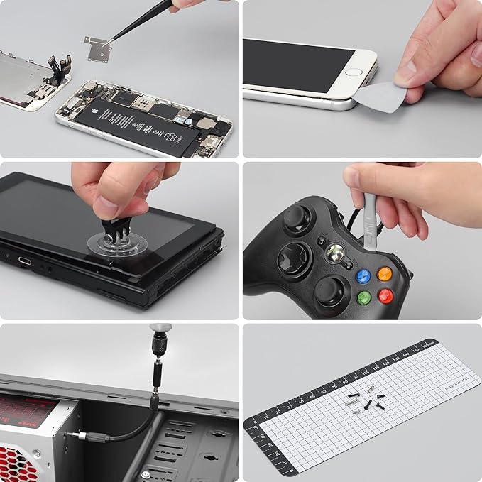 - 【Practical Accessories】This computer screwdriver kit contains 13 effective tools for different repair needs. The Magnetic Pickup Bit helps you to grab micro objects from hard-to-reach places. Magnetic Mat is great for keeping track of screws and tiny parts. Magnetizer Demagnetizer Tool strengthens magnetism of the tips for easy screw grabbing, or weakens it to protect sensitive electronics. Additionally, 4 long neck bits allow you to reach screws that other precision screwdrivers can't