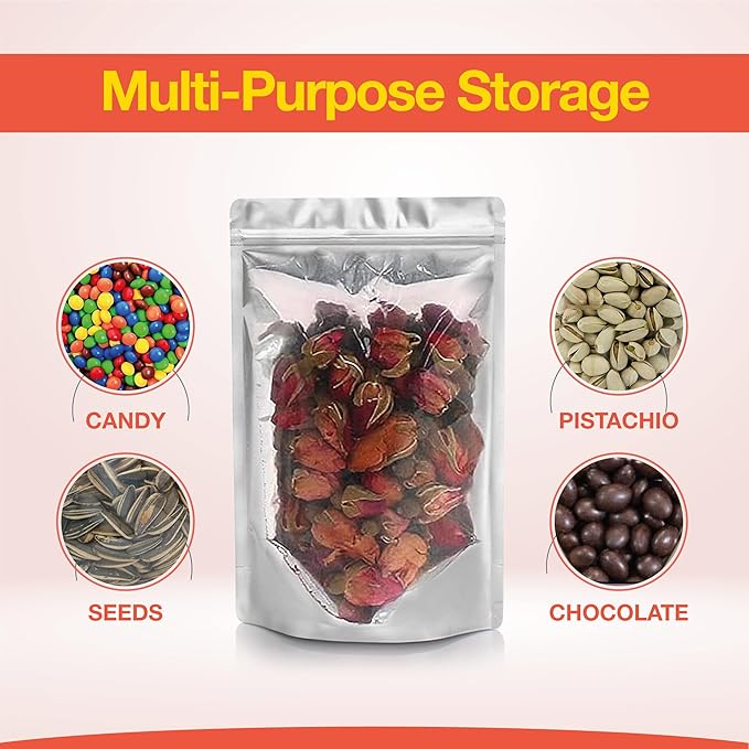 - Clear Front Mylar Bags & Glossy Back: Small freezer cup mylar bags are a must have household item. The mylar food bags transparent front helps to identify the stored product easily