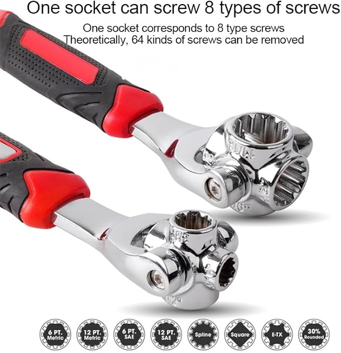 - ---The 48-in-1 socket wrench,the right tool for any job by simply clicking between the different sizes or swiveling it. You don't need multiple socket wrenches or large tool kits. No more lugging around heavy tool boxes.