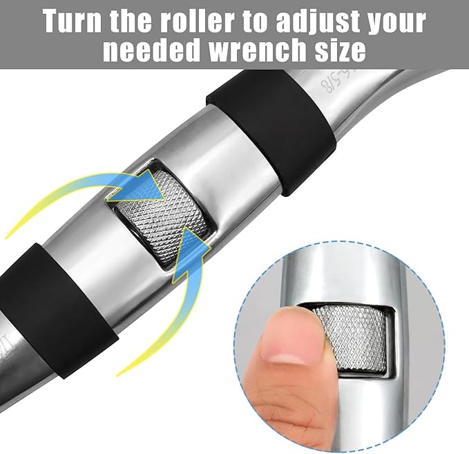 - 23 Sizes in 1 Wrench: The adjustable wrench could apply for 23 sizes: 1/4, 5/16, 11/32, 3/8, 7/16, 1/2, 9/16, 5/8, 11/16, 3/4, 7mm, 8mm, 9mm, 10mm, 11mm, 12mm, 13mm, 14mm, 15mm, 16mm, 17mm, 18mm, 19mm.