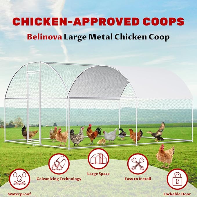 Chicken Coop Large Metal Chicken Coop for 15-20 Chickens with Waterproof and Anti-UV Cover,Premium Walk-in Poultry Cage for Chicken Run,Chicken House for Outdoor Farm Use(13.1'Lx9.8'Wx6.6'H)