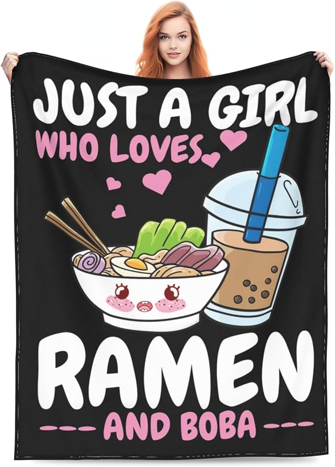 Ramen Blanket Just A Girl Who Loves Ramen and Boba Throw Blanket Super Warm Soft Plush Lightweight Fleece Flannel Ramen Noodles Blanket Gifts for Girls Baby Kids Women for Sofa Couch Bedding 40"X50"