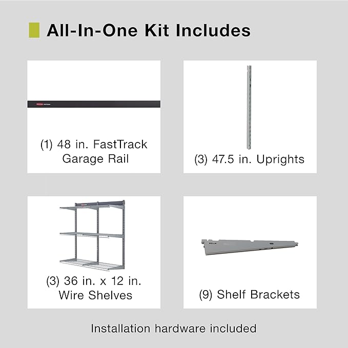 Rubbermaid Fasttrack Rail Storage 36"x12" 3-Shelf Kit, 350 lbs. Per Shelf, for Home/Garage/Shed/Workshop Organization