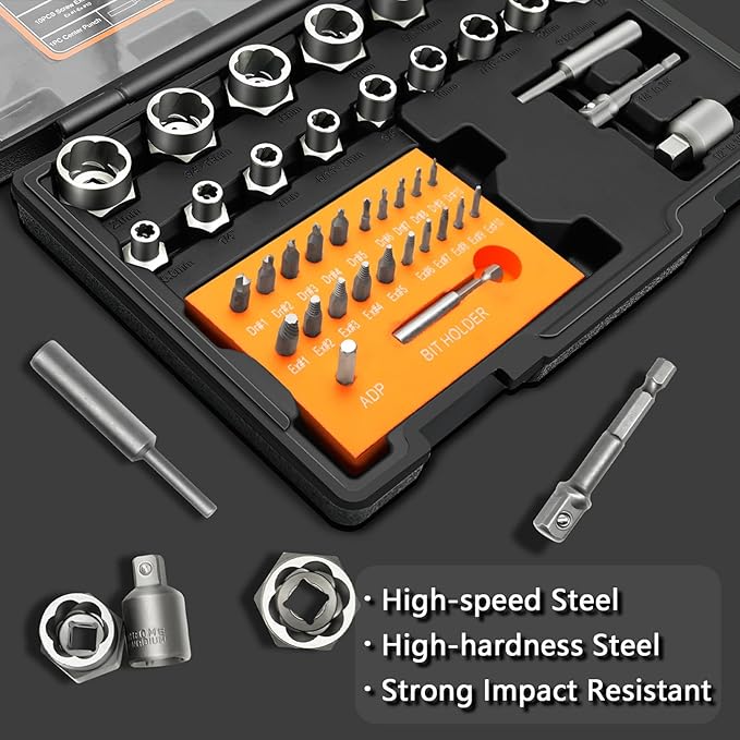 41Pcs Bolt Extractor Kit and Small Screw Extractor Set, Ez Out Bolt Extractor Tool with 5Pcs Compatible Adapter for Stripped Screw, Broken Nut and Damaged Bolt Remove